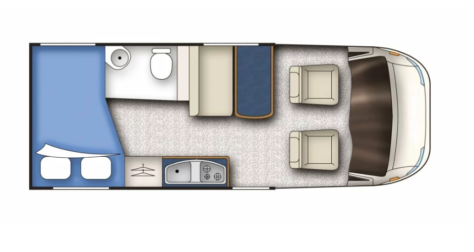 | Achter | Dwars bed met hieronder opbergruimte. |