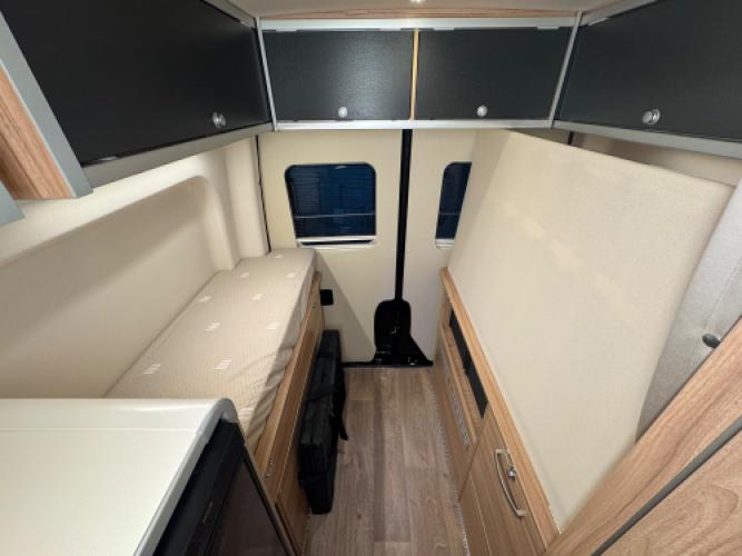 | Achter | Vast bed met daaronder opbergruimte. |