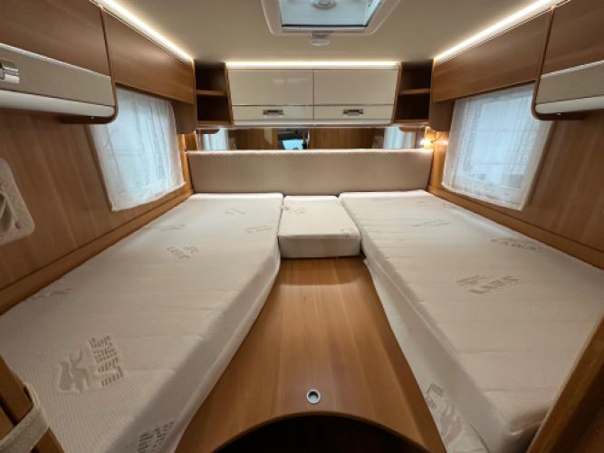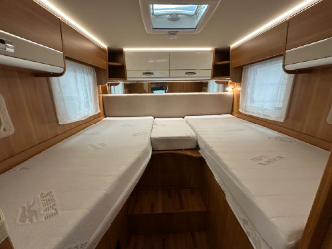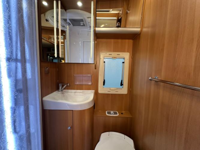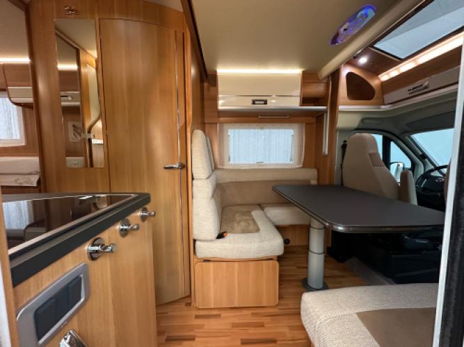 Deze Laika Ecovip 309 uit 2018 is een comfortabele half-integraal camper met een hoogwaardige afwerking en een praktische indeling. Laika maakt deel uit van de Erwin Hymer Group, wat staat voor bewezen kwaliteit, duurzaamheid en een hoog afwerkingsniveau. De camper beschikt over een gezellige zitgroep met elektrisch hefbed, waardoor je overdag extra ruimte hebt en ’s avonds eenvoudig een volwaardig bed creëert. Achterin vind je twee enkele bedden en een ruime badkamer met aparte douchecabine. Daarnaast is er een grote achtergarage aanwezig, ideaal voor fietsen en bagage. Dankzij de slimme indeling en het comfort is deze Ecovip 309 perfect voor zowel korte als lange reizen.
