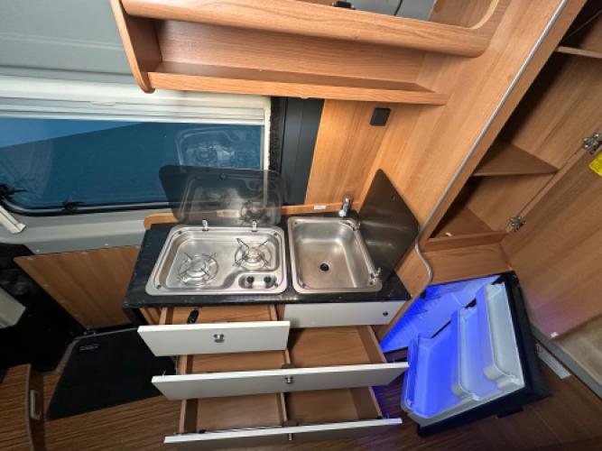 | Achter | Vast bed in dwarsrichting met veel opbergruimte hieronder. |