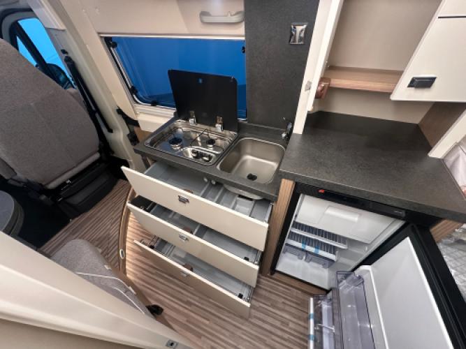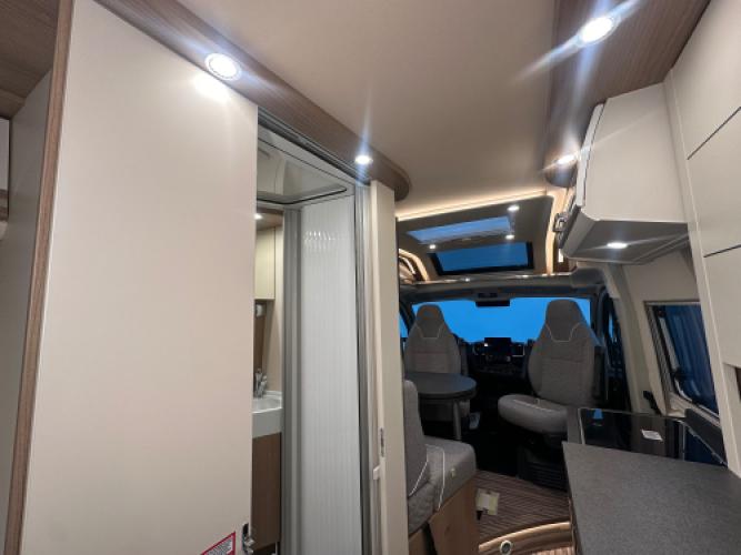 | Voorzijde | Dinette door de voorstoelen bij te draaien en de luxe cabine. |