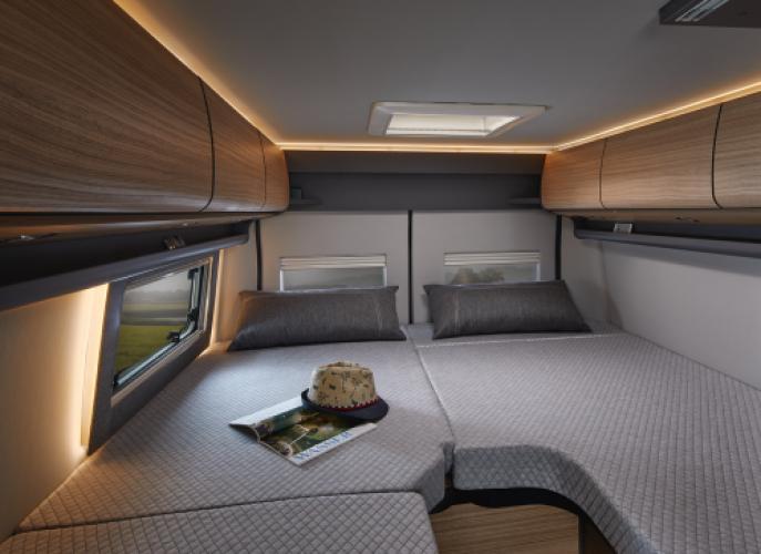 | Achter | Comfortabele enkele bedden met praktische opbergruimtes. |
