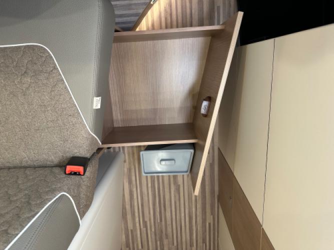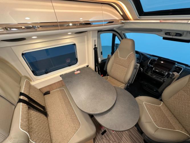 | Voorzijde | Dinette door de voorstoelen bij te draaien en de ingang naar het hefdak. |