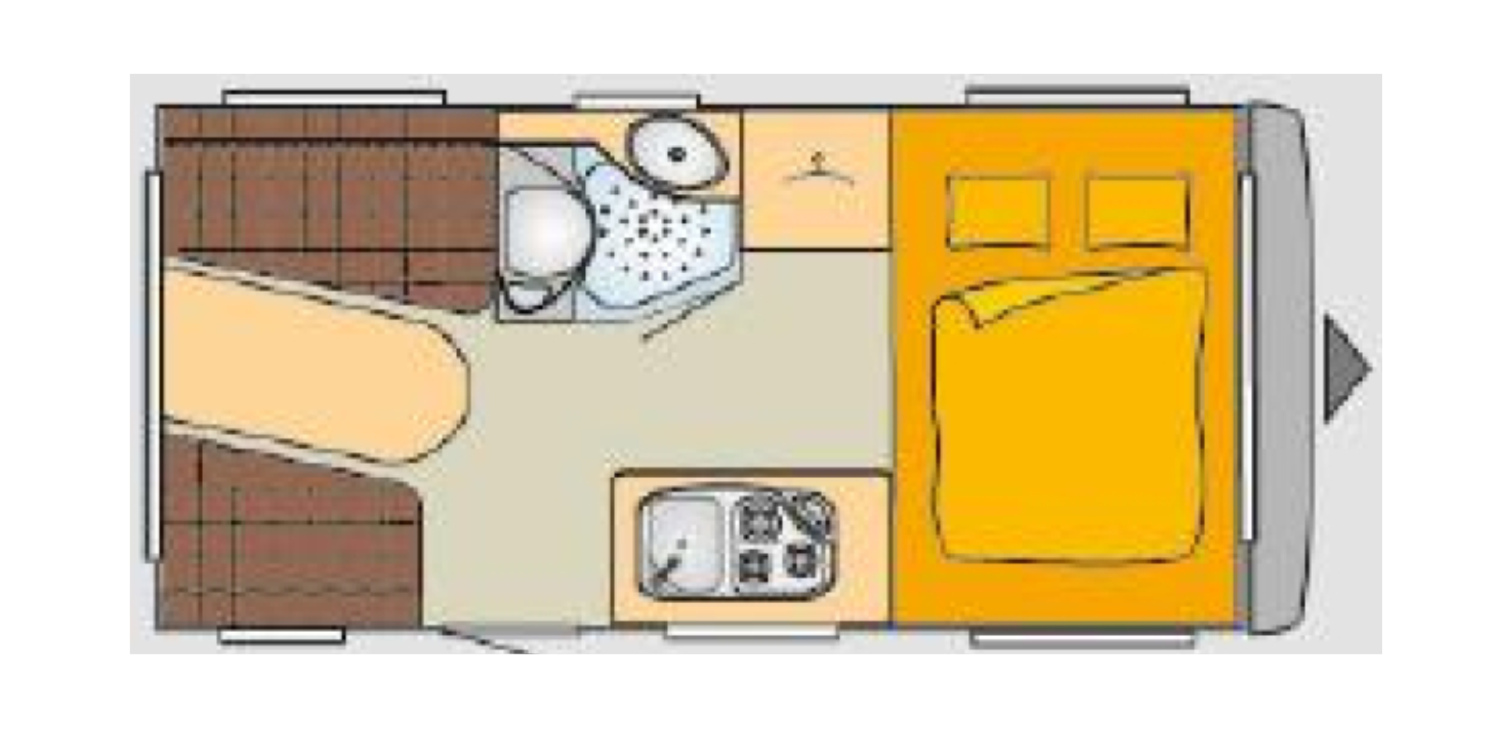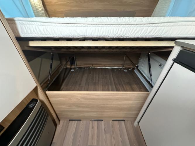 | Voorzijde | Dwarsbed met hieronder opbergruimte. |