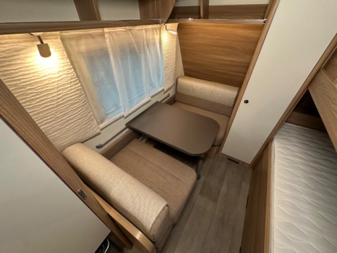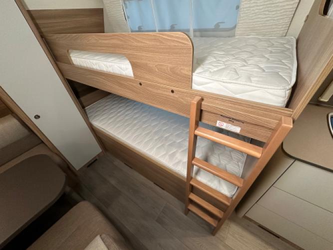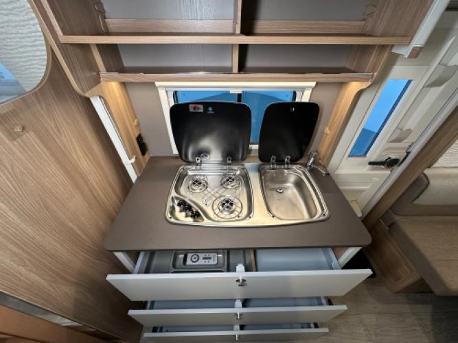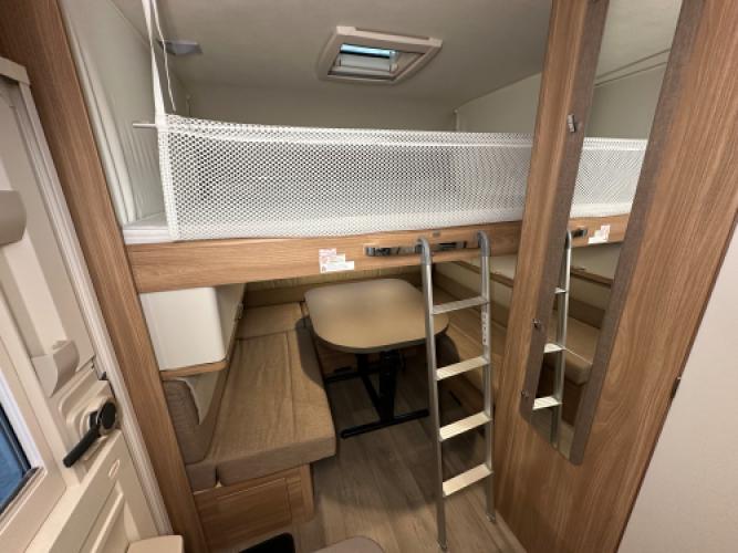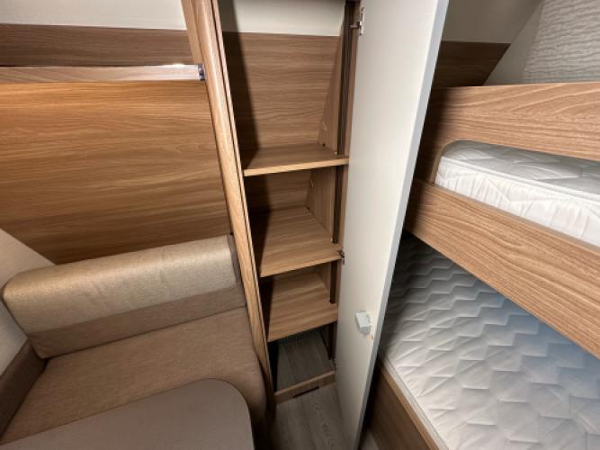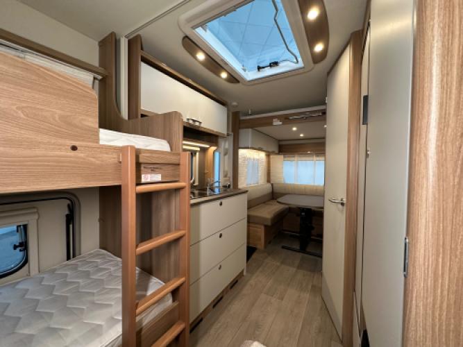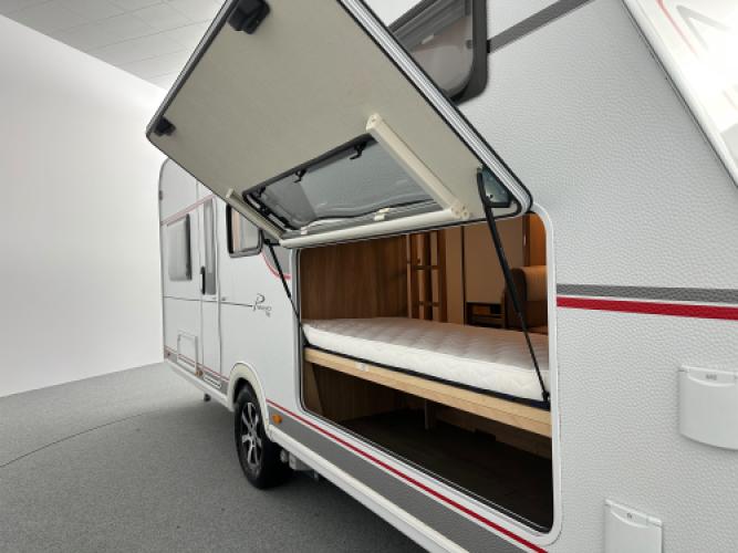 Deze prachtige Bürstner Premio 510 TK is voorzien van een stapelbed en een hefbed wat de caravan uiteindelijk geschikt maakt voor 7 personen. Bürstner staat bekend om vele opbergruimtes en de betrouwbare, hoogwaardige afwerking en dat is bij dit model duidelijk terug te zien. Denk bijvoorbeeld aan het slimme hefbed, doormiddel van een knop kunt u het bed gemakkelijk naar beneden schuiven. Daarnaast heeft de caravan een stapelbed, het bed kan eenvoudig worden opgeklapt zodat er ruimte ontstaat voor het opbergen van grotere spullen. Wanneer u nu bij ons een caravan of camper aanschaft, kunt u gebruikmaken van onze stallingsmogelijkheid. De caravan of camper kan kosteloos tot en met het voorjaar bij ons blijven staan, zodat u rustig de tijd heeft om een geschikte stalling bij u in de buurt te vinden. Vraag onze medewerkers naar de voorwaarden.