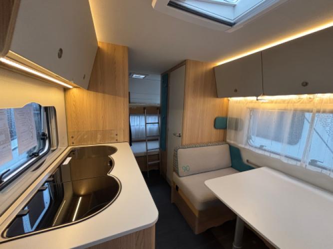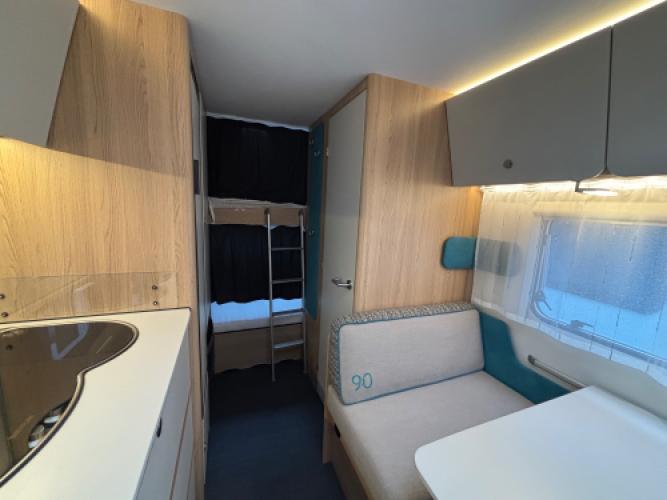 De prachtige Dethleffs Aero 500 QSK is een ruime gezinscaravan die beschikt over mooie opties. Perfect voor grotere gezinnen dankzij het stapelbed en de treinzit, die kan worden omgebouwd tot extra slaapplaatsen. De caravan heeft een garage deur waardoor het eenvoudig is om bijvoorbeeld fietsen mee te nemen door het stapelbed omhoog te zetten. Ook bij deze wagen zien we waarom mensen voor Dethleffs blijven kiezen: betrouwbare kwaliteit met een strakke afwerking. Wanneer u nu bij ons een caravan of camper aanschaft, kunt u gratis gebruikmaken van onze stallingsmogelijkheid. De caravan of camper kan kosteloos tot en met het voorjaar bij ons blijven staan, zodat u rustig de tijd heeft om een geschikte stalling bij u in de buurt te vinden. Vraag onze medewerkers naar de voorwaarden