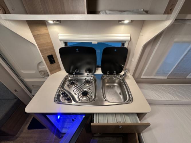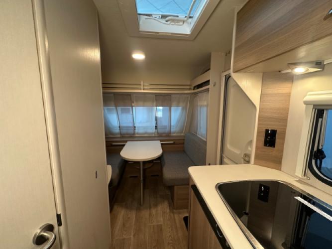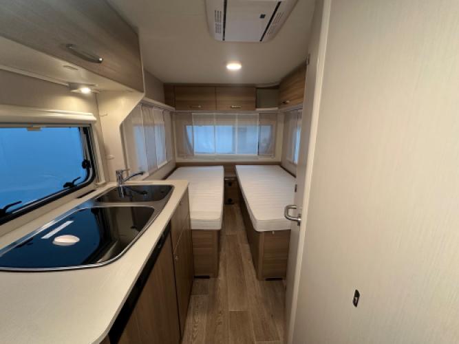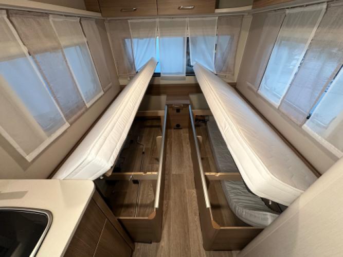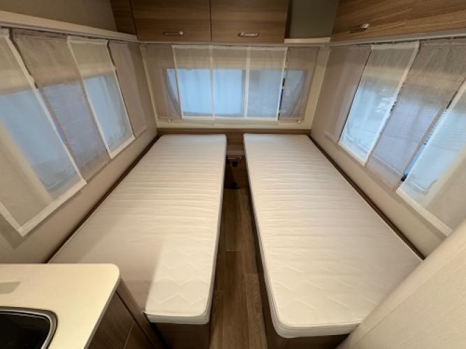 Deze Dethleffs C-Joy 460 EL is uitgerust met opties die uw vakantie een stuk eenvoudiger maakt! Denk hierbij aan een Enduro mover, Thule cassetteluifel en een Telair dakairco. De caravan is ingedeeld met de welbekende enkele bedden met dinette. Wat speciaal is aan deze caravan is dat de enkele bedden hoger zijn geplaatst, zo heeft u een stuk meer opbergruimte. Wanneer u nu bij ons een caravan of camper aanschaft, kunt u gebruikmaken van onze stallingsmogelijkheid. De caravan of camper kan kosteloos tot en met het voorjaar bij ons blijven staan, zodat u rustig de tijd heeft om een geschikte stalling bij u in de buurt te vinden. Vraag onze medewerkers naar de voorwaarden.
