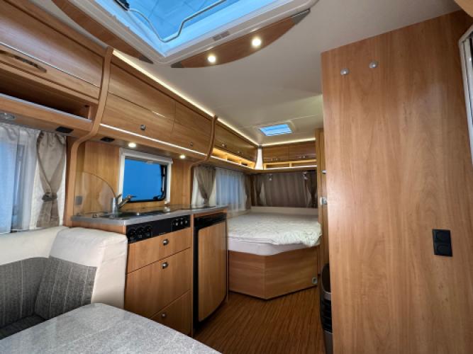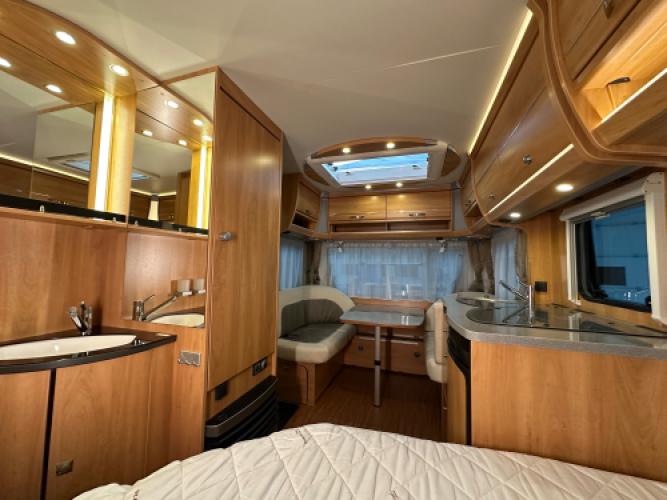 De Dethleffs Camper 450 FR is een ideale caravan voor stellen en gezinnen die comfortabel willen reizen zonder concessies te doen aan ruimte en gemak. Deze populaire indeling combineert een praktische opzet met het vertrouwde kwaliteitsniveau van Dethleffs. Dankzij de slimme indeling met een Frans bed, een gezellige dinette en een complete middenkeuken, biedt deze caravan alles wat u nodig heeft voor een ontspannen vakantie. Deze caravan is uitgerust met ene aantal luxe opties zoals een Truma mover, fietsendrager voor en-achterop en een luifel.