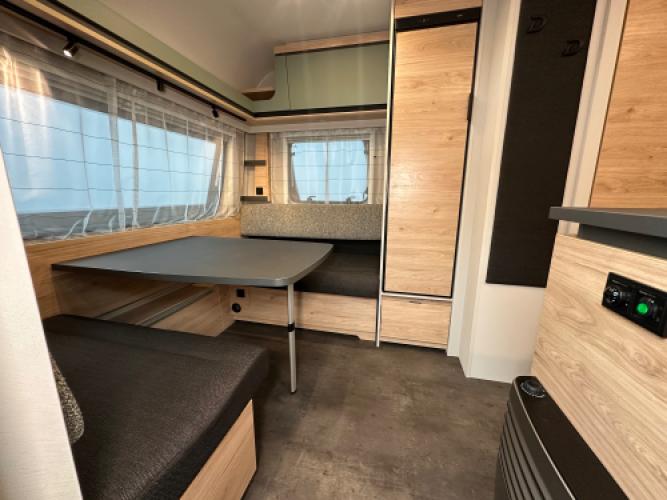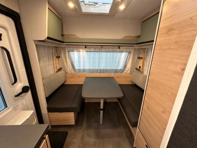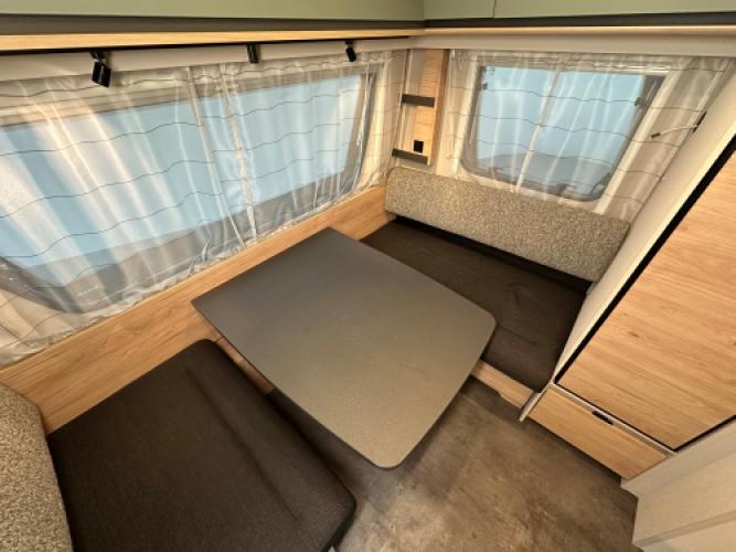 | Achter | Ruime dinette die eenvoudig is om te bouwen tot extra slaapplaatsen. |