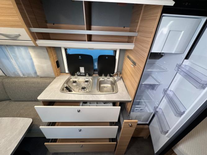 Deze prachtige Dethleffs 470 FR uit 2023 is uitgerust met een aantal luxe opties zoals een Fiamma cassetteluifel, Go 2 mover en een Thule kantelbare fietsendrager. De caravan is voorzien van een populaire indeling namelijk achterin een ruime rondzit wat uu eenvoudig kan ombouwen tot extra slaapplaatsen, en voorin een frans bed met hiernaast de badkamer en een externe wastafel. Wanneer u nu bij ons een caravan of camper aanschaft, kunt u gratis gebruikmaken van onze stallingsmogelijkheid. De caravan of camper kan kosteloos tot en met het voorjaar bij ons blijven staan, zodat u rustig de tijd heeft om een geschikte stalling bij u in de buurt te vinden. Vraag onze medewerkers naar de voorwaarden.