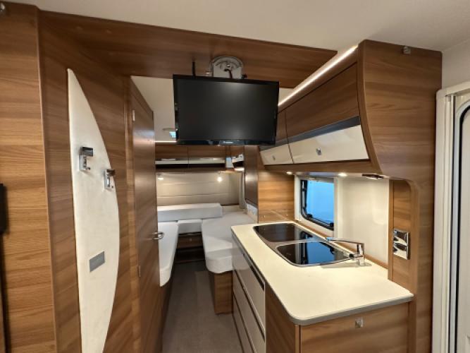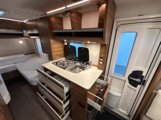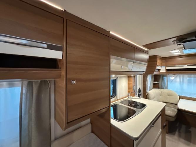 Deze prachtige Dethleffs Nomad 460 EL is een caravan waarbij de hoogwaardige afwerking en kwaliteit direct opvallen. Van binnen straalt de caravan pure klasse en luxe uit door de bruine tinten. De Nomad is ideaal voor kampeerders die nét wat meer luxe, kwaliteit en comfort zoeken dan bij een basiscaravan. Volledig uitgerust met de opties die u nodig hebt om comfortabel en zorgeloos op reis te gaan! Wanneer u nu bij ons een caravan of camper aanschaft, kunt u gebruikmaken van onze stallingsmogelijkheid. De caravan of camper kan kosteloos tot en met het voorjaar bij ons blijven staan, zodat u rustig de tijd heeft om een geschikte stalling bij u in de buurt te vinden. Vraag onze medewerkers naar de voorwaarden.