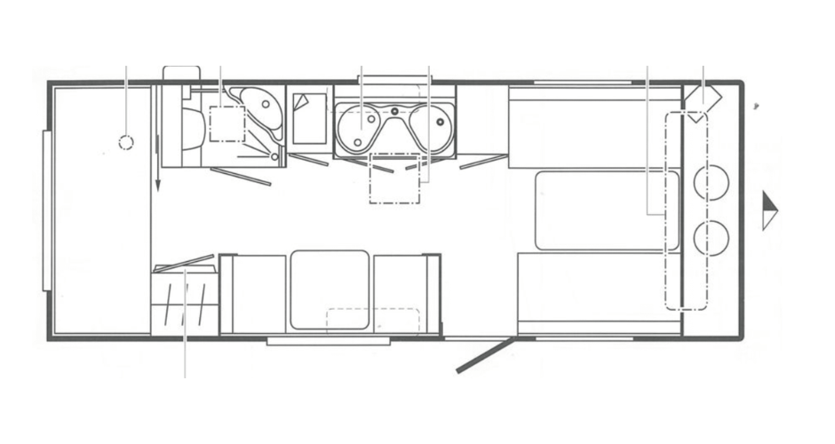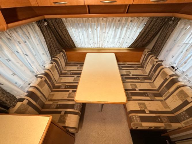 | Voorzijde | Ruime dinette wat u kunt ombouwen tot extra slaapplaatsen. |