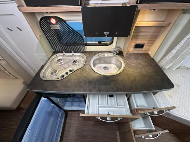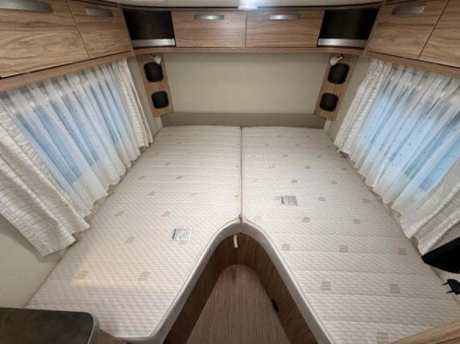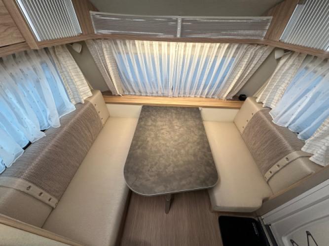 Deze prachtige Eriba Feeling 442 is uitgerust met luxe opties, waaronder Thule Casetteluifel en vloerverwarming. Daarnaast beschikt deze caravan over de zeer populaire indeling met enkele bedden in de lengte en een ruime dinette, die eenvoudig is om te bouwen tot extra slaapplaatsen. Uiteraard zien we ook bij deze caravan de hoogwaardige kwaliteit terug waar Eriba om bekendstaat. Wanneer u nu bij ons een caravan of camper aanschaft, kunt u gebruikmaken van onze stallingsmogelijkheid. De caravan of camper kan kosteloos tot en met het voorjaar bij ons blijven staan, zodat u rustig de tijd heeft om een geschikte stalling bij u in de buurt te vinden. Vraag onze medewerkers naar de voorwaarden.