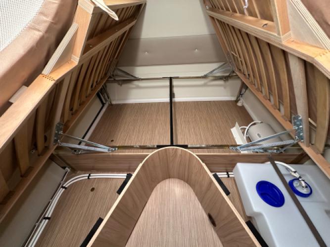 | Achter | Enkele bedden met daaronder opbergruimte. |