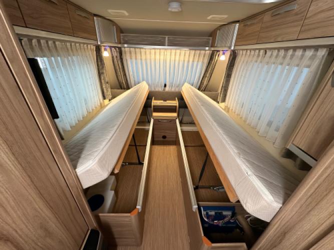 Deze populaire Eriba Feeling beschikt over alle opties die u nodig heeft om zorgeloos op vakantie te gaan! Dek hierbij aan de gewilde ideling: enkele bedden met dinette. Opties waardoor u uw leefruimte aanzienlijke vergoot, denk hierbij aan de Reda voortent en Campooz luifel. Wanneer u nu bij ons een caravan of camper aanschaft, kunt u gratis gebruikmaken van onze stallingsmogelijkheid. De caravan of camper kan kosteloos tot en met het voorjaar bij ons blijven staan, zodat u rustig de tijd heeft om een geschikte stalling bij u in de buurt te vinden. Vraag onze medewerkers naar de voorwaarden.
