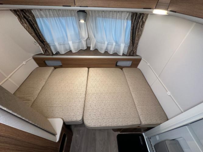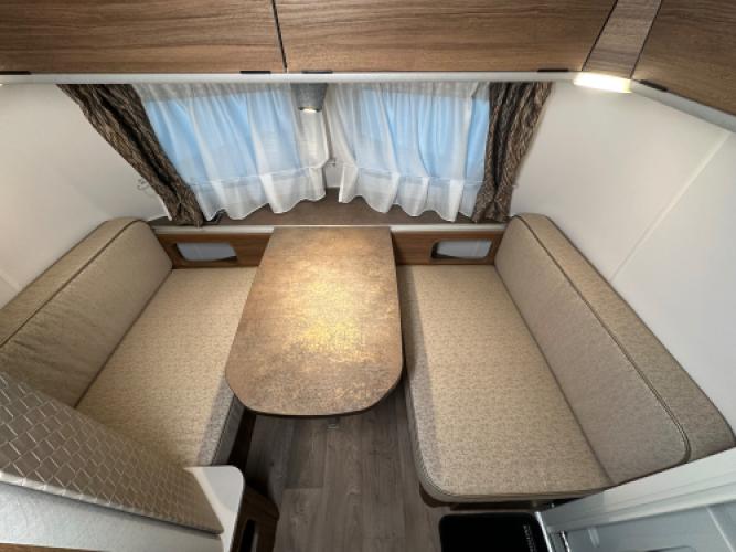 | Voorzijde | Ruime dinette die u kunt ombouwen tot extra bed. |