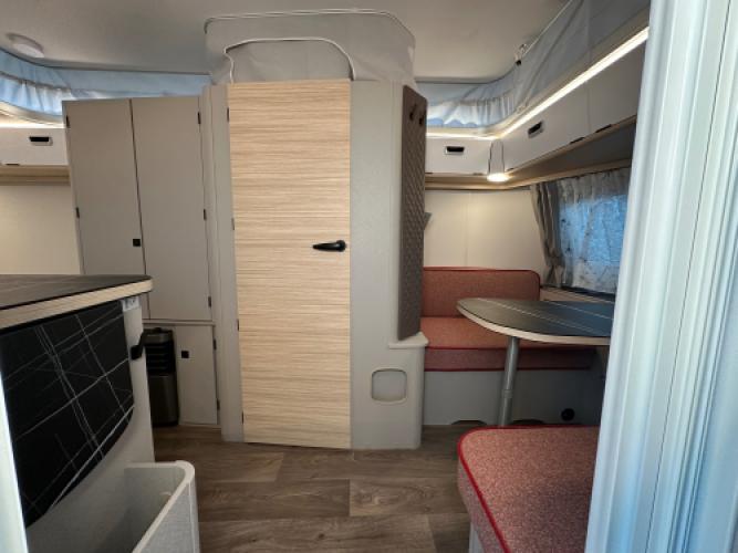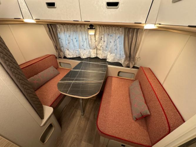 | Voorzijde | Ruime dinette die u kunt ombouwen tot extra bed. |