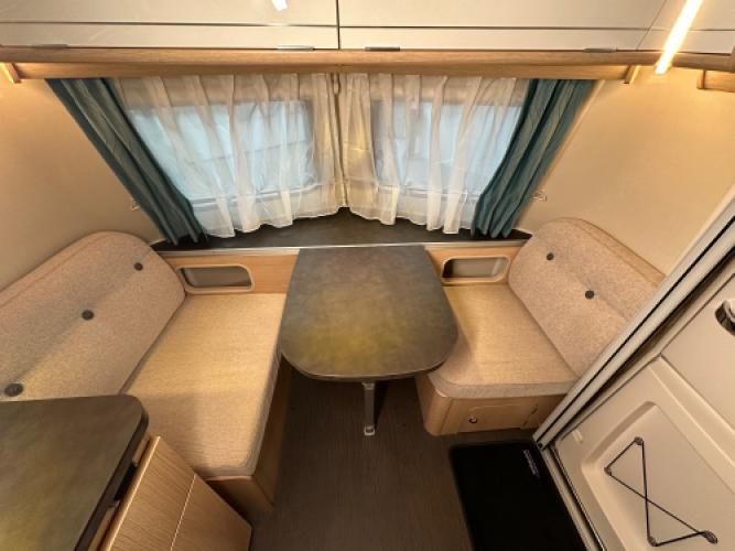 Deze prachtige Eriba Touring Pan Familia 310 60 Edition beschikt over een zeer praktische indeling waarbij alle ruimte optimaal wordt benut, daardoor is deze caravan voor 3 personen geschikt. Aan de voorzijde bevindt zich een gezellige dinette en achterin een dwarsbed met veel opbergruimte eronder. Uiteraard zien we bij dit exemplaar ook terug waar Eriba om bekendstaat: hoogwaardige kwaliteit en een strakke afwerking.