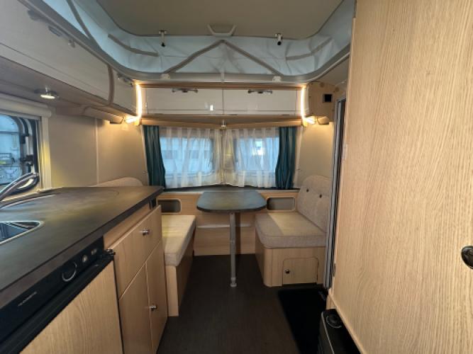 | Voorzijde | Dinette die u kunt ombouwen tot extra bed. |