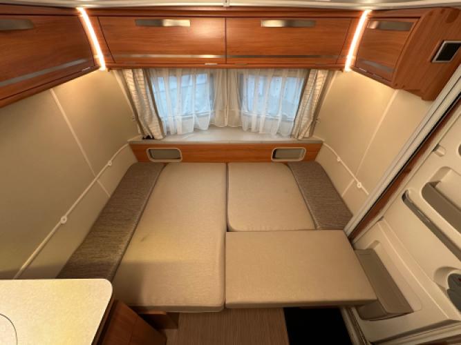 | Voorzijde | Ruime dinette wat u kunt ombouwen tot extra slaapplaatsen. |
