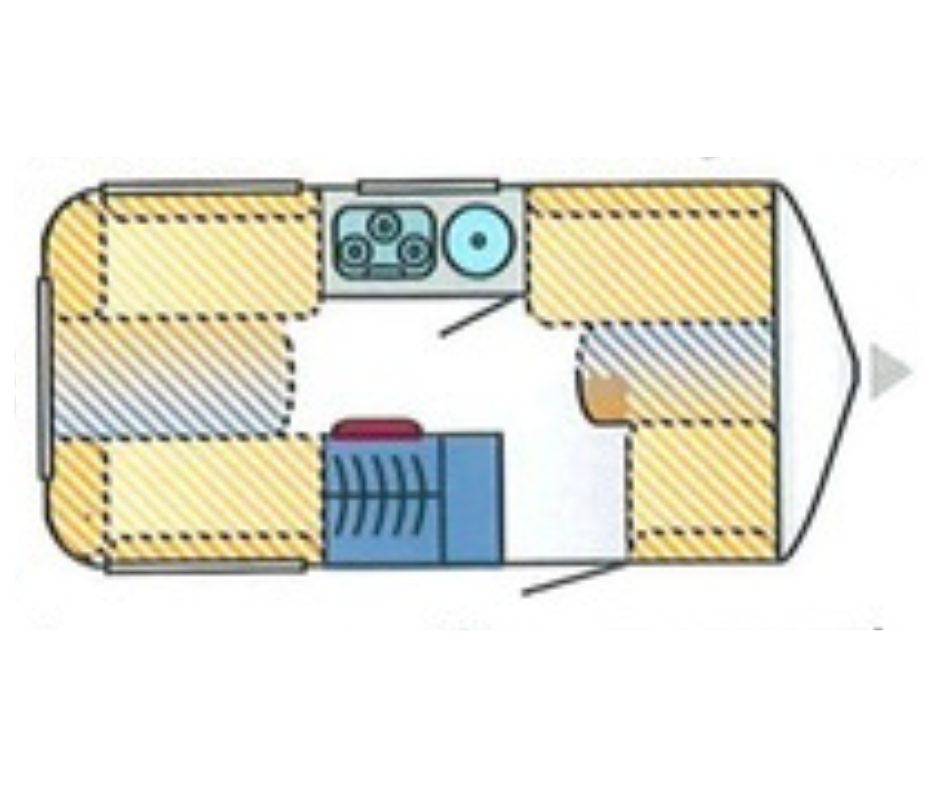 | Achter | Dwarsbed met hieronder opbergruimte. |