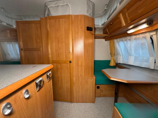 | Voorzijde | Ruime dinette die gemakkelijk kan worden omgebouwd tot groot bed met opbergruimte hieronder. |