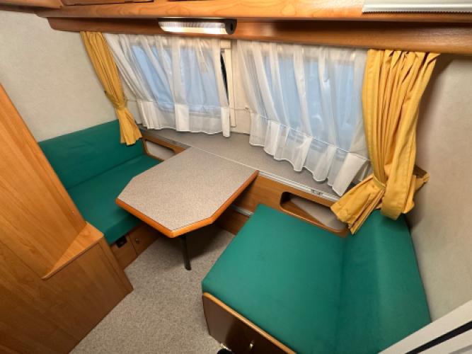 | Achter | Gezellige dinette die eenvoudig is om te bouwen tot extra slaapplaats. |