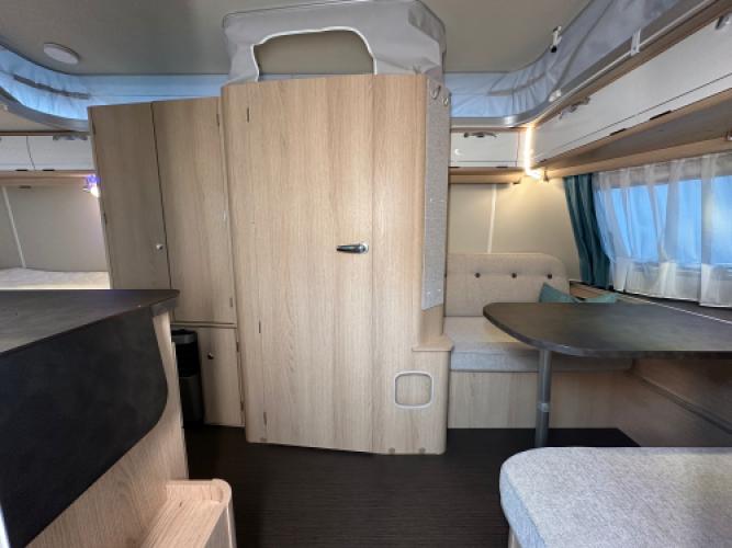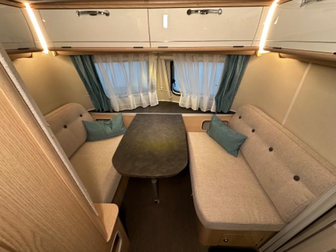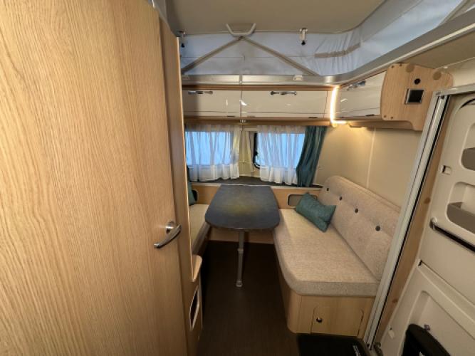 | Voorzijde | Dinette wat u kunt ombouwen tot extra slaapplaatsen. |