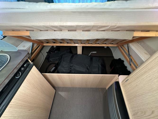 | Achter | Dwarsbed met hieronder opbergruimte. |