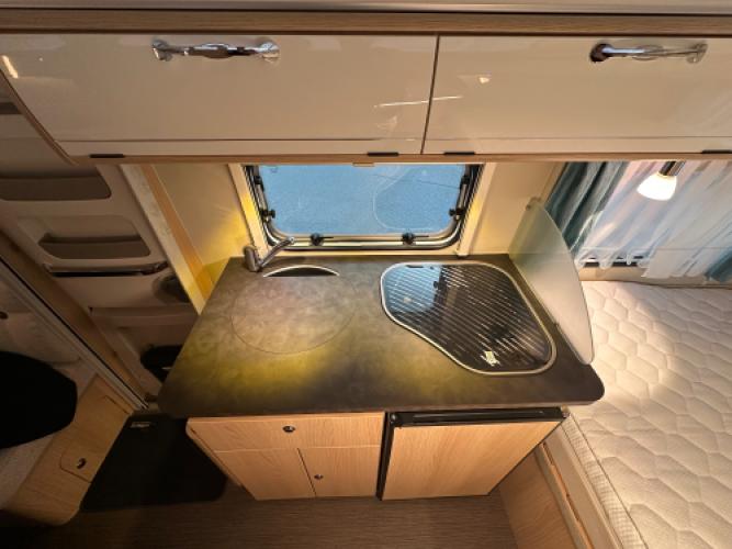 Deze stijlvolle Eriba Touring Troll 530 GT 60 Edition is een bijzondere uitvoering met het kenmerkende retrodesign en moderne comfort. De praktische indeling met een gezellige zitgroep en comfortabel vast bed maakt hem ideaal voor ontspannen vakanties. Uitgerust met diverse luxe opties, waaronder een Thule cassetteluifel, Reich mover en Thule fietsendrager, is deze caravan van alle gemakken voorzien.