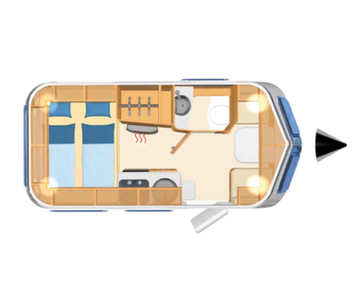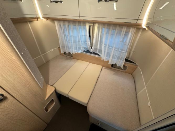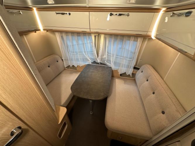 | Achter | Gezellige dinette welke eenvoudig om te bouwen is naar extra tweepersoonsbed. |