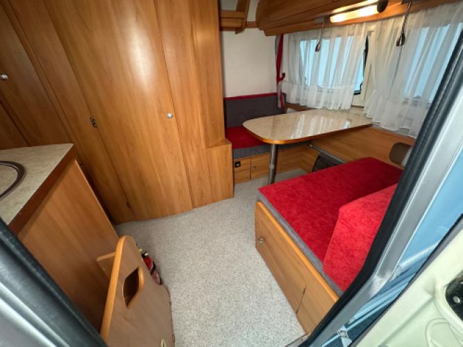 | Voorzijde | Ruime dinette die u kunt ombouwen tot extra bed. |