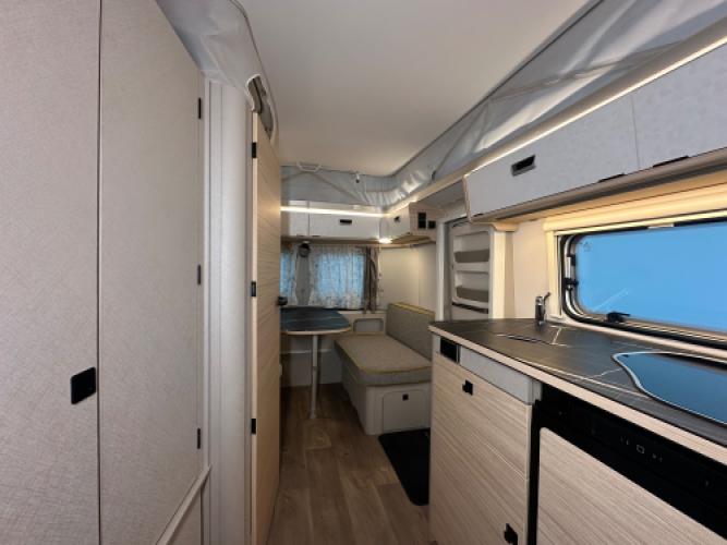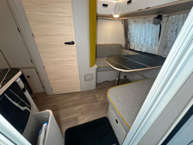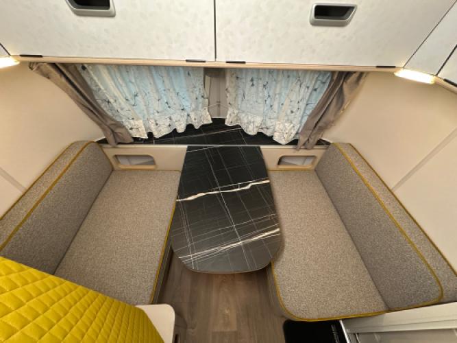 | Voorzijde | Dinette wat eenvoudig is om te bouwen naar extra slaapplaatsen. |