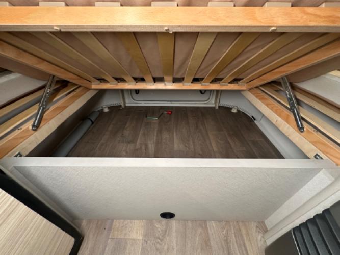 | Achter | Vastbed in dwarsrichting met hieronder opbergruimte. |