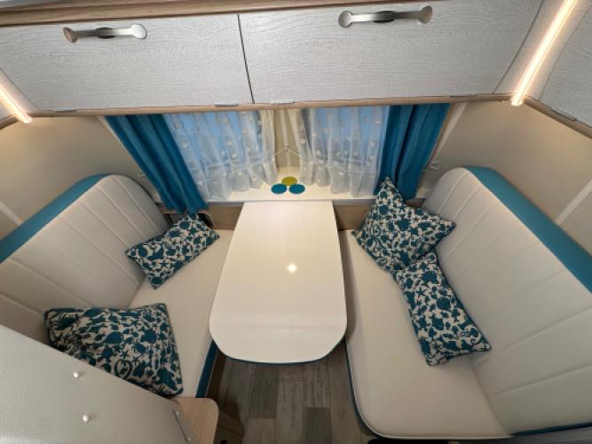 | Voorzijde | Ruime dinette welke eenvoudig is om te bouwen naar extra slaapplaats. |