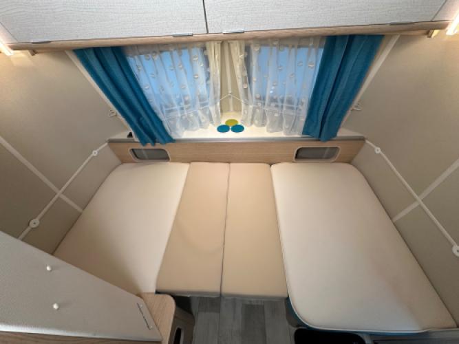 | Achter | Dwarsbed met daaronder veel opbergruimte, bereikbaar via het serviceluik. |