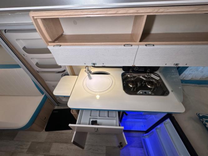 Maak u klaar voor iets super unieks! De Eriba Touring Troll 530 Ocean Drive zoals we die kennen wordt namelijk niet langer gemaakt, maar wij hebben hem in ons aanbod voor u! Uitgerust met een Thule cassetteluifel, Thule kantelbare fietsendrager, hordeur, en serviceluik bent u al van allerlei kampeerluxe voorzien. Deze unieke combinatie van helderblauw met wit zullen de hoofden zowel onderweg als op de camping doen draaien. Ook aan de binnenkant wordt dit voortgezet. De blauwe accenten en doordachte details zorgen voor een uitzonderlijk vrolijk gevoel bij binnenkomst.Wanneer u nu bij ons een caravan of camper aanschaft, kunt u gebruikmaken van onze stallingsmogelijkheid. De caravan of camper kan kosteloos tot en met het voorjaar bij ons blijven staan, zodat u rustig de tijd heeft om een geschikte stalling bij u in de buurt te vinden. Vraag onze medewerkers naar de voorwaarden.