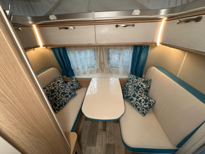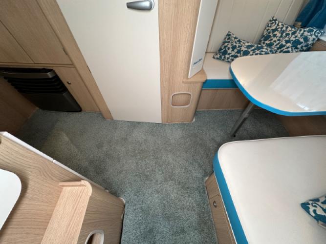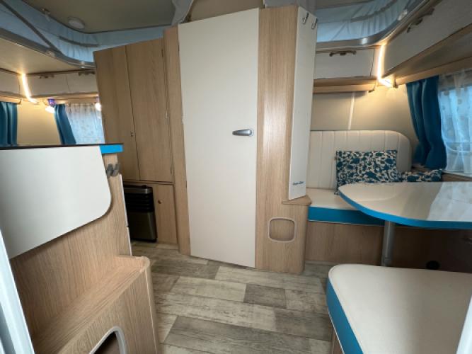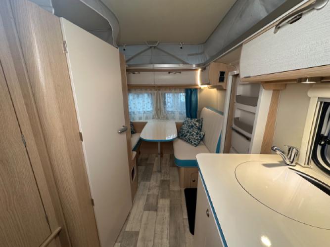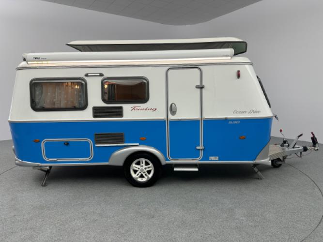 Een parel deze Eriba Touring Troll 530 in de Ocean Drive uitvoering die u doet terugdenken aan de jaren 50. Met zijn zeeblauwe kleuraccenten brengt de Ocean Drive heel veel beach-gevoel in de caravan. Ook zijn er een luxe opties gemonteerd zoals een Thule cassetteluifel, hordeur en nog veel meer. De caravan heeft een op maat vloerbedekking die u zelf erin en eruit kan leggen. Wanneer u nu bij ons een caravan of camper aanschaft, kunt u gebruikmaken van onze stallingsmogelijkheid. De caravan of camper kan kosteloos tot en met het voorjaar bij ons blijven staan, zodat u rustig de tijd heeft om een geschikte stalling bij u in de buurt te vinden. Vraag onze medewerkers naar de voorwaarden.