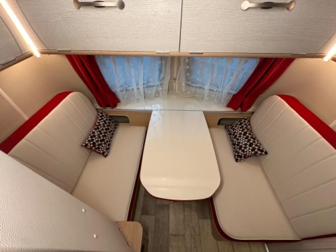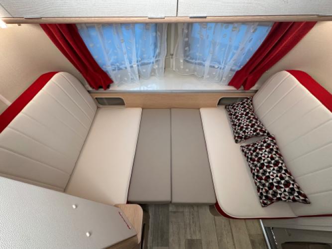 | Voorzijde | Ruime dinette die u kunt ombouwen tot bed. |
