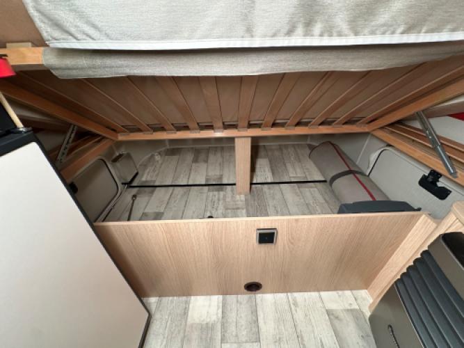 | Achter | Dwars bed met hieronder opbergruimte. |