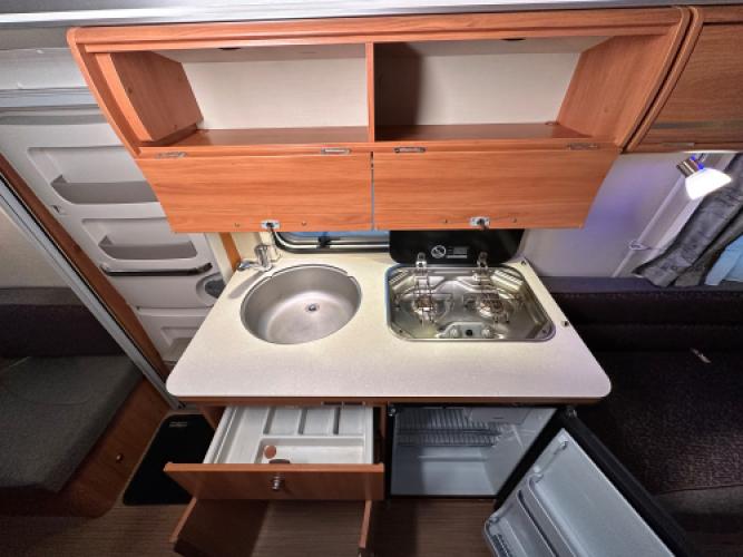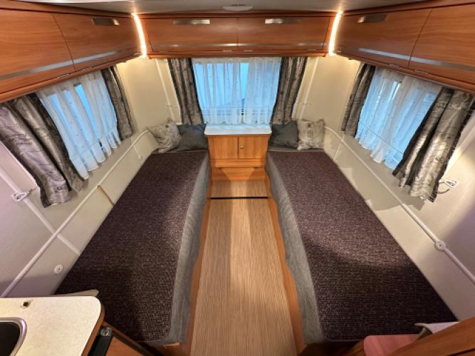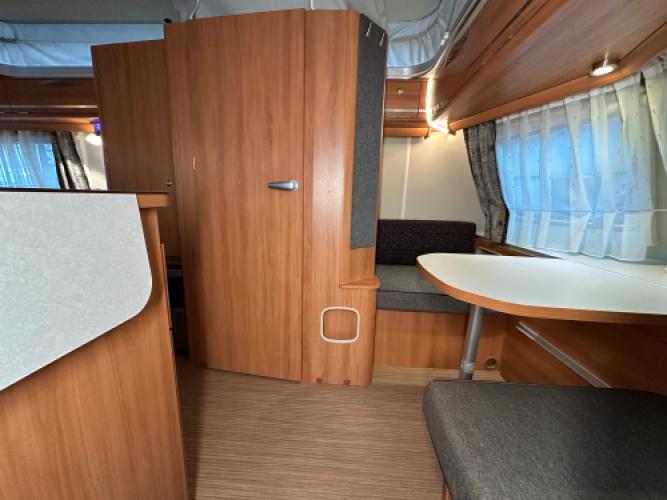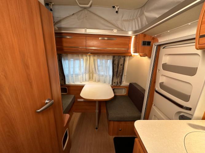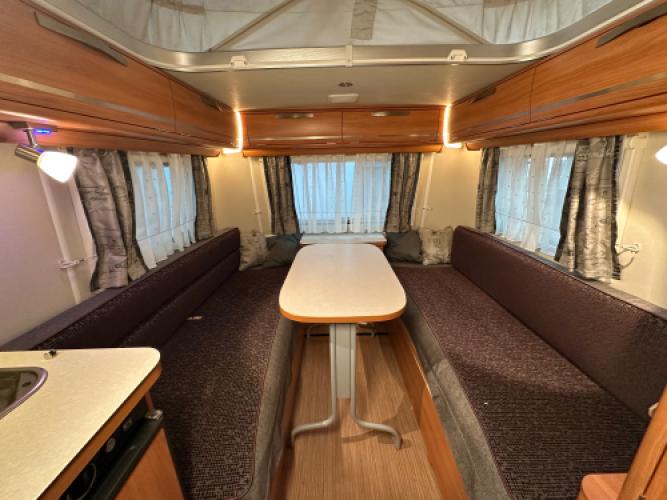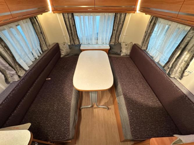 Deze Eriba Touring Troll 540 is een stijlvolle retrocaravan met een populaire indeling: een dubbele dinette. De achterste dinette kunt u ombouwen tot bed of twee enkele bedden. Deze uitvoering is rijk uitgerust met extra’s zoals een Thule kantelbare fietsendrager, een Truma mover, een Thule cassetteluifel en een accu voor eigen stroomvoorziening. Een perfect uitgeruste caravan voor wie stijl, comfort en vrijheid onderweg belangrijk vindt.