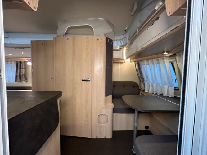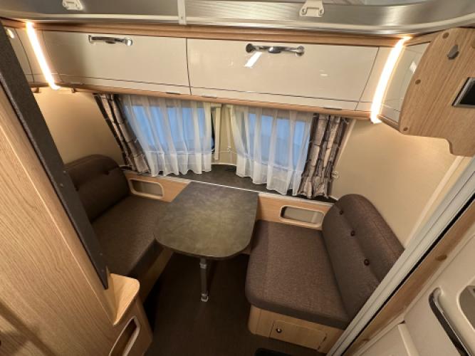 | Voorzijde | Dinette die eenvoudig kan worden omgebouwd tot extra slaapplaats. |