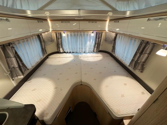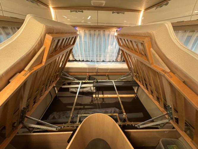 | Achter | Enkele bedden met een V in het midden, waarmee u één groot bed kunt creëren. |