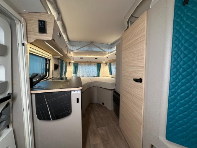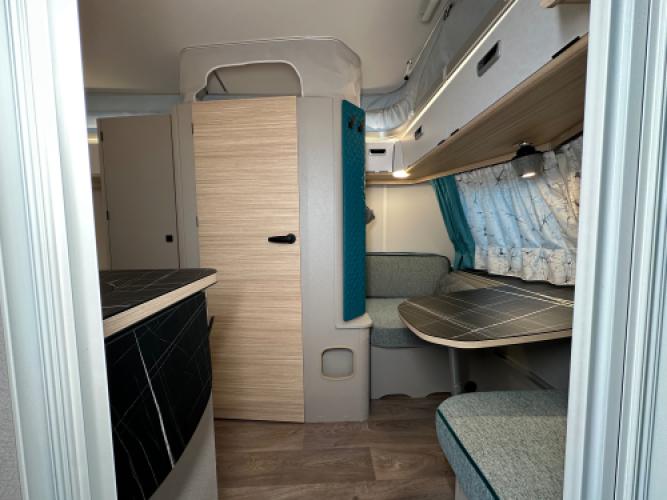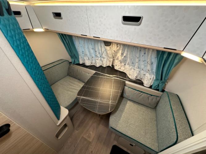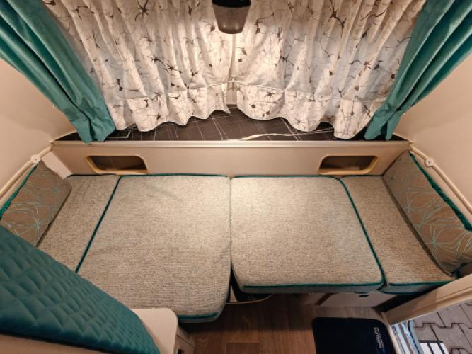 | Voorzijde | Dinette die u kunt ombouwen tot extra bed. |