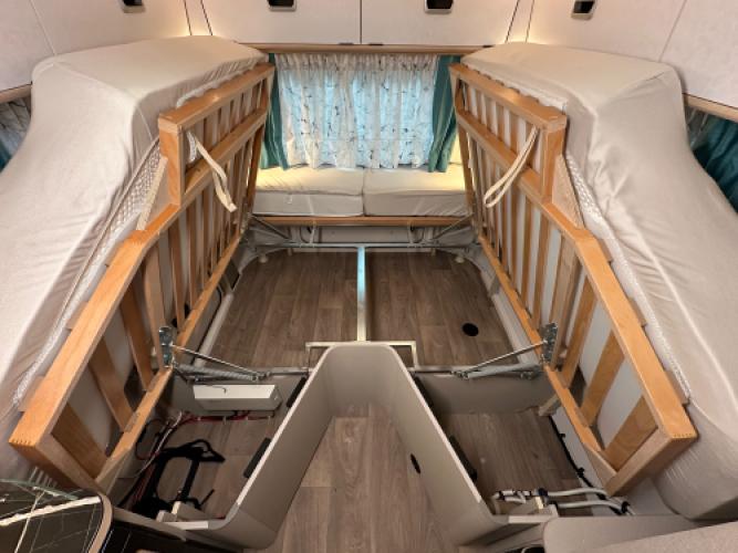 | Achter | Dwars bed met hieronder opbergruimte. |