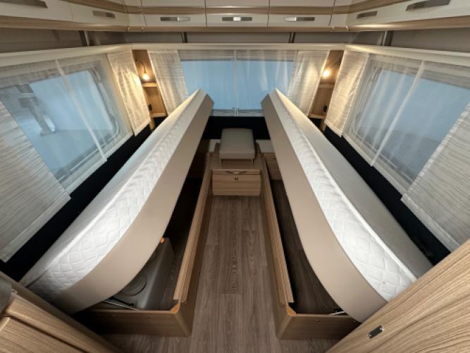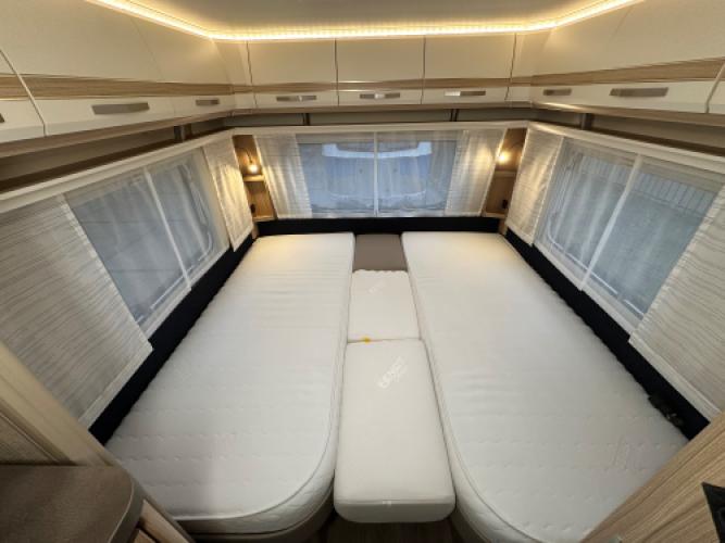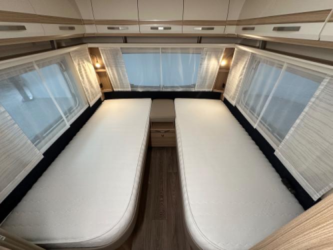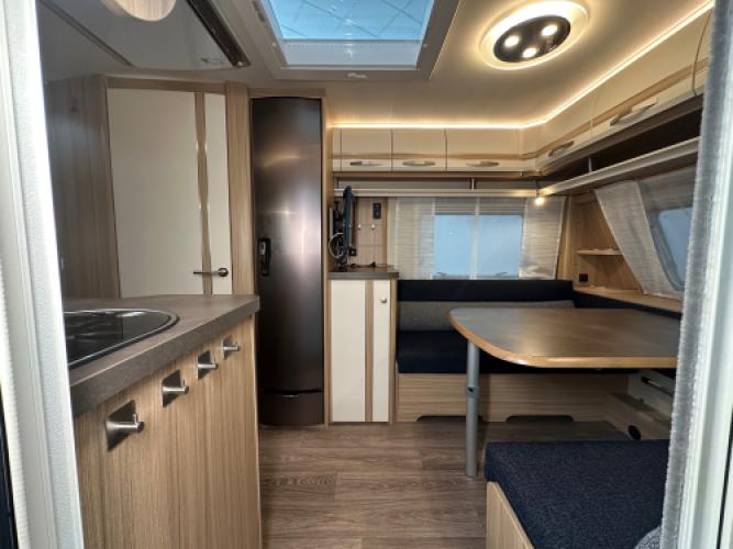 Deze prachtige Fendt Bianco Activ 515 SGE is uitgerust met super veel luxe opties zoals een Gree dakairco, Thule fietsendrager en accu voor eigen stroom. De caravan beschikt over de zeer gewilde indeling met enkele bedden achterin en een ruime dinette voorin. Zoals altijd zien we ook bij dit exemplaar de hoogwaardige kwaliteit en afwerking terug waar Fendt om bekendstaat. Caravan heeft lichte hagelputjes op het dak, hierop is de prijs voor u gebaseerd. Wanneer u nu bij ons een caravan of camper aanschaft, kunt u gratis gebruikmaken van onze stallingsmogelijkheid. De caravan of camper kan kosteloos tot en met het voorjaar bij ons blijven staan, zodat u rustig de tijd heeft om een geschikte stalling bij u in de buurt te vinden. Vraag onze medewerkers naar de voorwaarden.