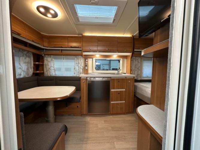 Deze Fendt Saphir 445 TFB is een geliefde middenklasse caravan die bekendstaat om zijn degelijke bouwkwaliteit, comfortabele indeling en luxe afwerking. Dit model biedt een fijne combinatie van ruimte, gebruiksgemak en typisch Duitse betrouwbaarheid, waardoor hij populair is bij zowel stellen als kleine gezinnen. Wanneer u nu bij ons een caravan of camper aanschaft, kunt u gebruikmaken van onze stallingsmogelijkheid. De caravan of camper kan kosteloos tot en met het voorjaar bij ons blijven staan, zodat u rustig de tijd heeft om een geschikte stalling bij u in de buurt te vinden. Vraag onze medewerkers naar de voorwaarden.