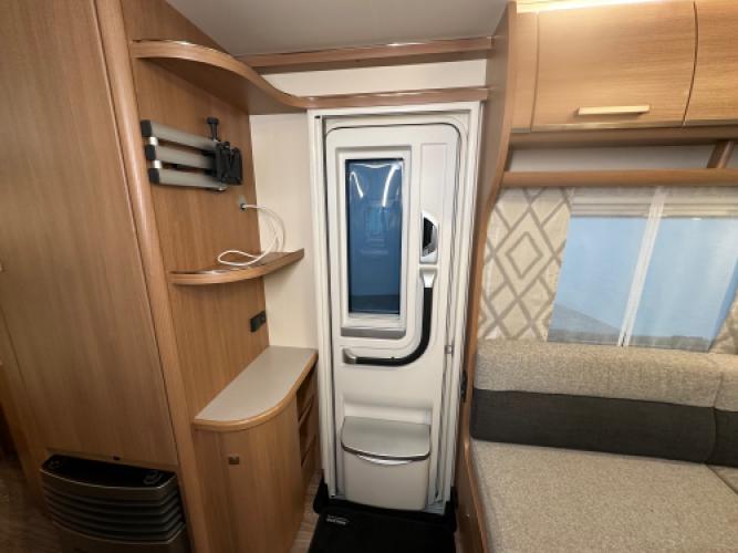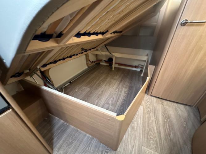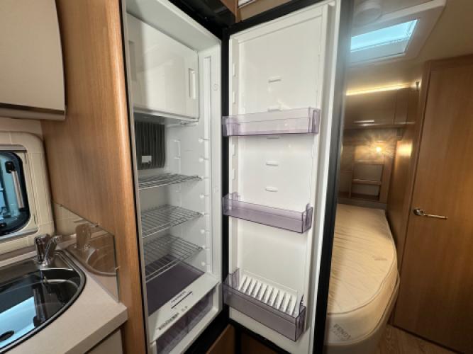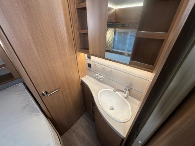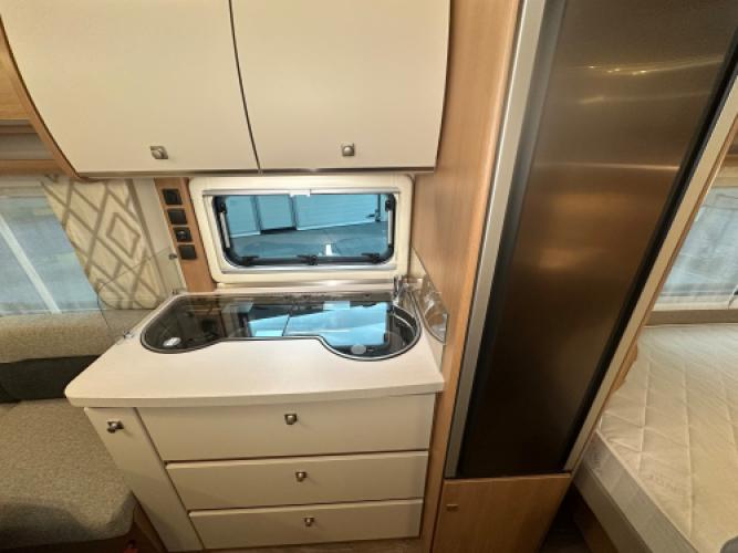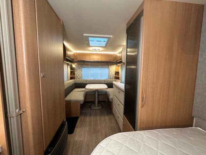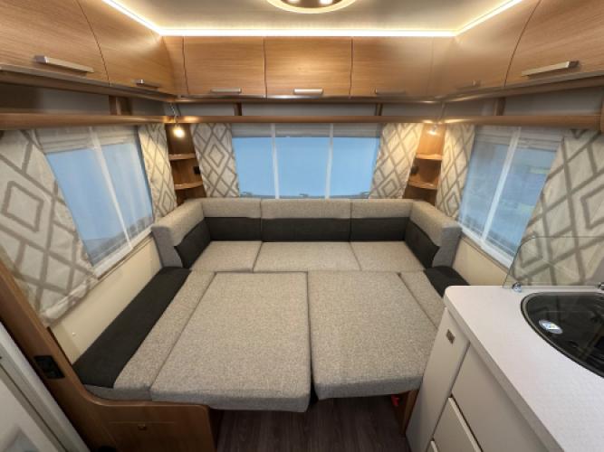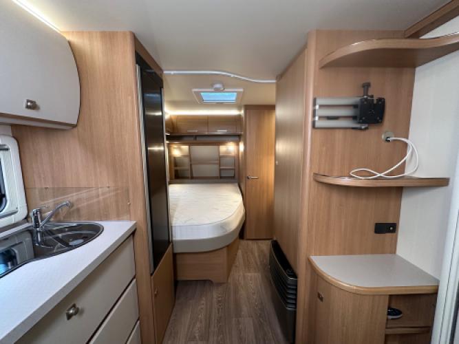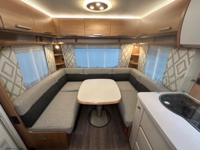 Deze Fendt Saphir SFB is compleet uitgerust met luxe opties die het reizen aangenaam en eenvoudig maken. Voorin bevindt zich een comfortabel Frans bed met daaronder een zeer ruime opbergruimte, die bovendien eenvoudig te bereikbaar is via het serviceluik. Daarnaast vindt u een toiletruimte met een externe wastafel in de hoek. In het midden staat een ruime, praktische keuken en een grote koelkast in Dual door‑model. Achterin bevindt zich een rondzit die u eenvoudig kunt ombouwen tot extra slaapplaatsen voor twee personen. Wanneer u nu bij ons een caravan of camper aanschaft, kunt u gebruikmaken van onze stallingsmogelijkheid. De caravan of camper kan kosteloos tot en met het voorjaar bij ons blijven staan, zodat u rustig de tijd heeft om een geschikte stalling bij u in de buurt te vinden. Vraag onze medewerkers naar de voorwaarden.