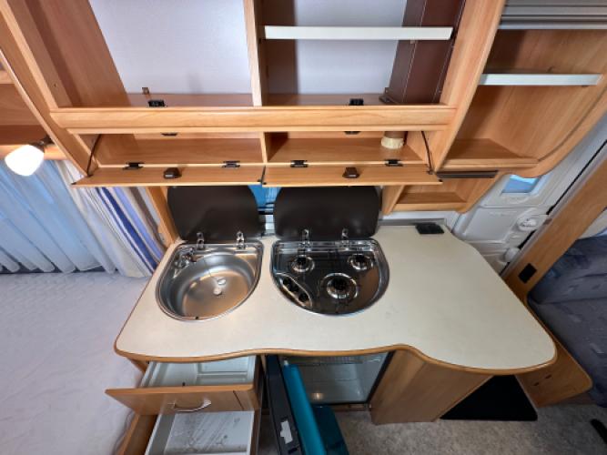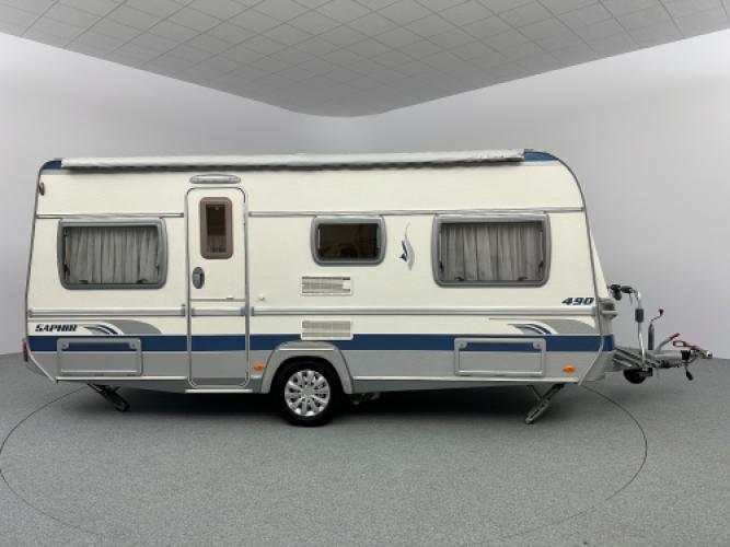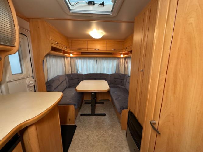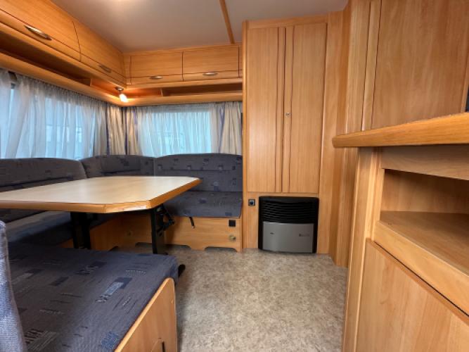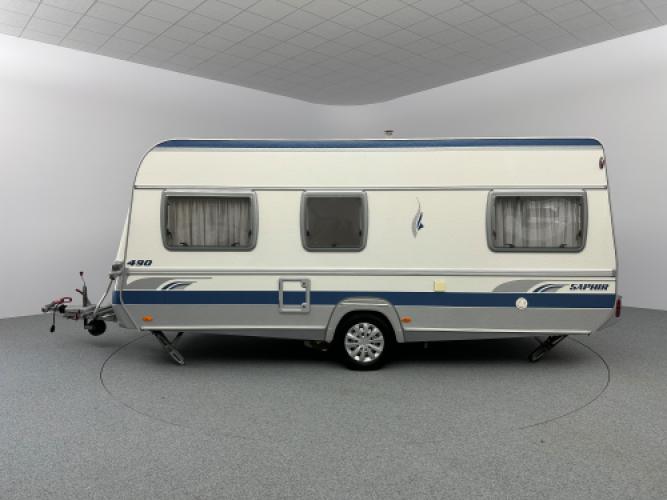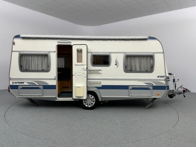 Deze prachtige Fendt Saphir 490 TF is uitgerust met luxe opties zoals een Fiamma zakluifel, Dorema voortent en een Truma mover. De caravan beschikt een populaire indeling namelijk een ruime rondzit wat u kunt ombouwen tot extra slaapplekken, en een dwars bed met hieronder veel opbergruimte. Wanneer u nu bij ons een caravan of camper aanschaft, kunt u gratis gebruikmaken van onze stallingsmogelijkheid. De caravan of camper kan kosteloos tot en met het voorjaar bij ons blijven staan, zodat u rustig de tijd heeft om een geschikte stalling bij u in de buurt te vinden. Vraag onze medewerkers naar de voorwaarden.