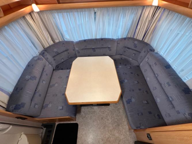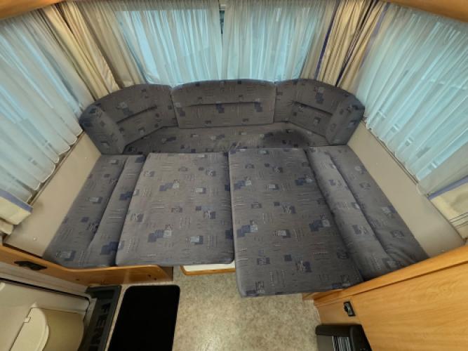 | Achter | Ruime rondzit wat u kunt ombouwen tot extra slaapplaatsen. |